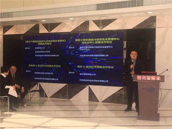 普開數(shù)據(jù)與河北新龍科技集團(tuán)簽訂戰(zhàn)略合作協(xié)議,共同打造新龍·智慧谷,探索融產(chǎn)業(yè)、教學(xué)和研究于一體的信息產(chǎn)業(yè)職業(yè)精英培養(yǎng)新模式。