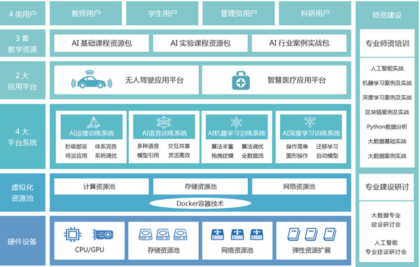 期間,北京普開數據公司副總經理劉生發表了《人工智能課程體系及實訓室建設方案》主題演講。系統介紹了人工智能實驗室項目建設目標及方案,一是利用人工智能實驗室項目的教學功能提高學生實踐能力。二是利用人工智能實驗室項目的科研功能提高教師在機器學習方向的深度學習研究、人工智能系統開發等能力。三是通過建設人工智能實驗室項目引進社會技術力量,通過對教師的實踐能力培養提升高校學術成果和服務社會的水平。